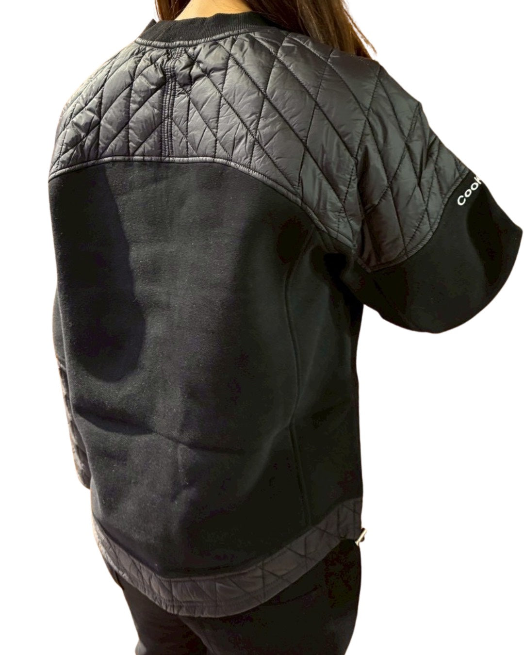 カットソーキルティングと中綿の暖かいプルオーバー。ベーシックなブラックとホワイトの2色展開で登場。コットンならではの柔らかな肌触りがありつつ、保湿性も申し分なし。異なった生地の切替やプリントではなく糸で編み込んだオリジナルロゴをあしらうなど、細部にも拘りました。冬のアウトドアに最適で、ユニセックスで楽しめます。使いまわししやすい一枚を是非。